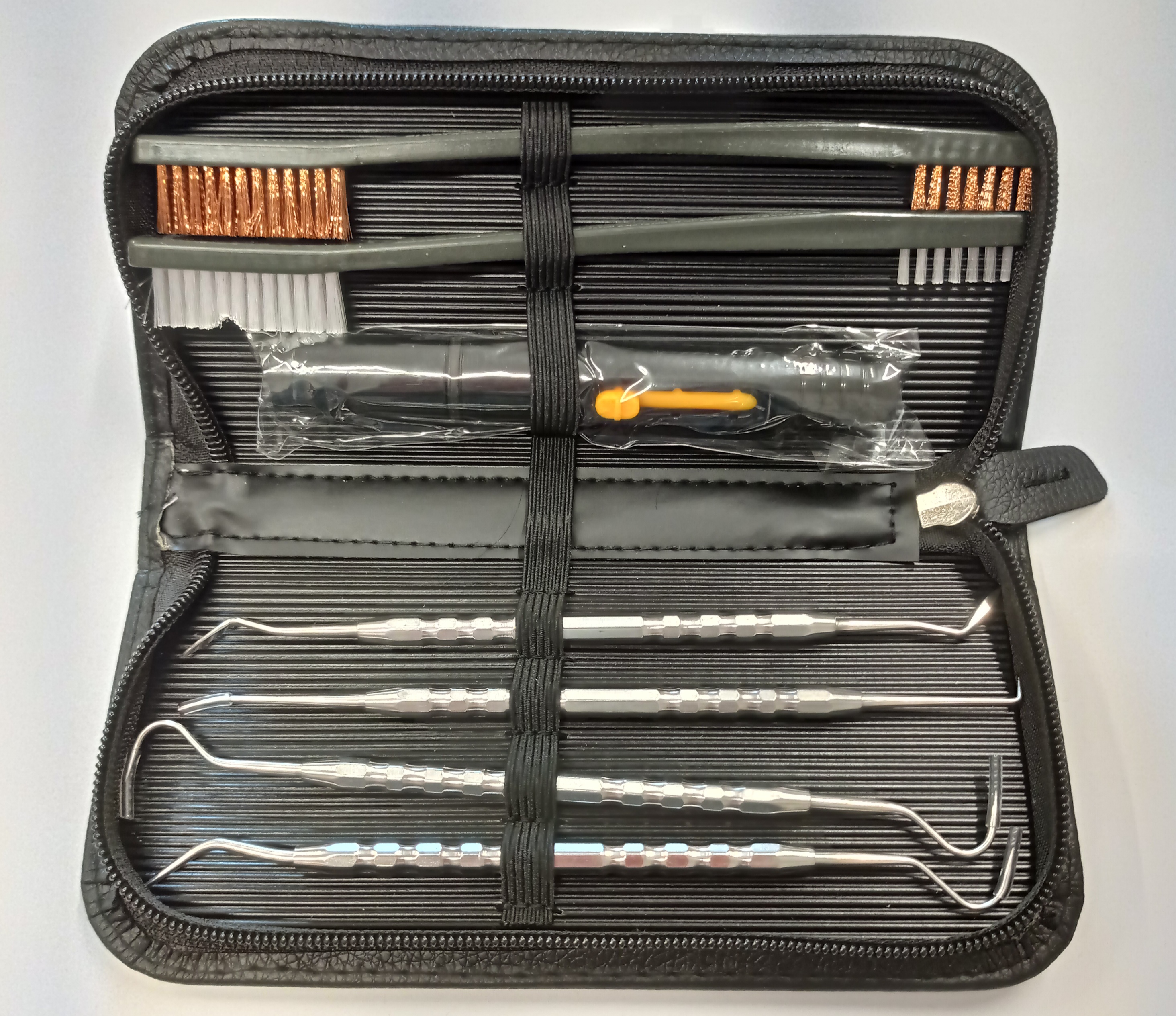 Čistící sada - háčky (4ks), kartáčky (2ks), stětec.