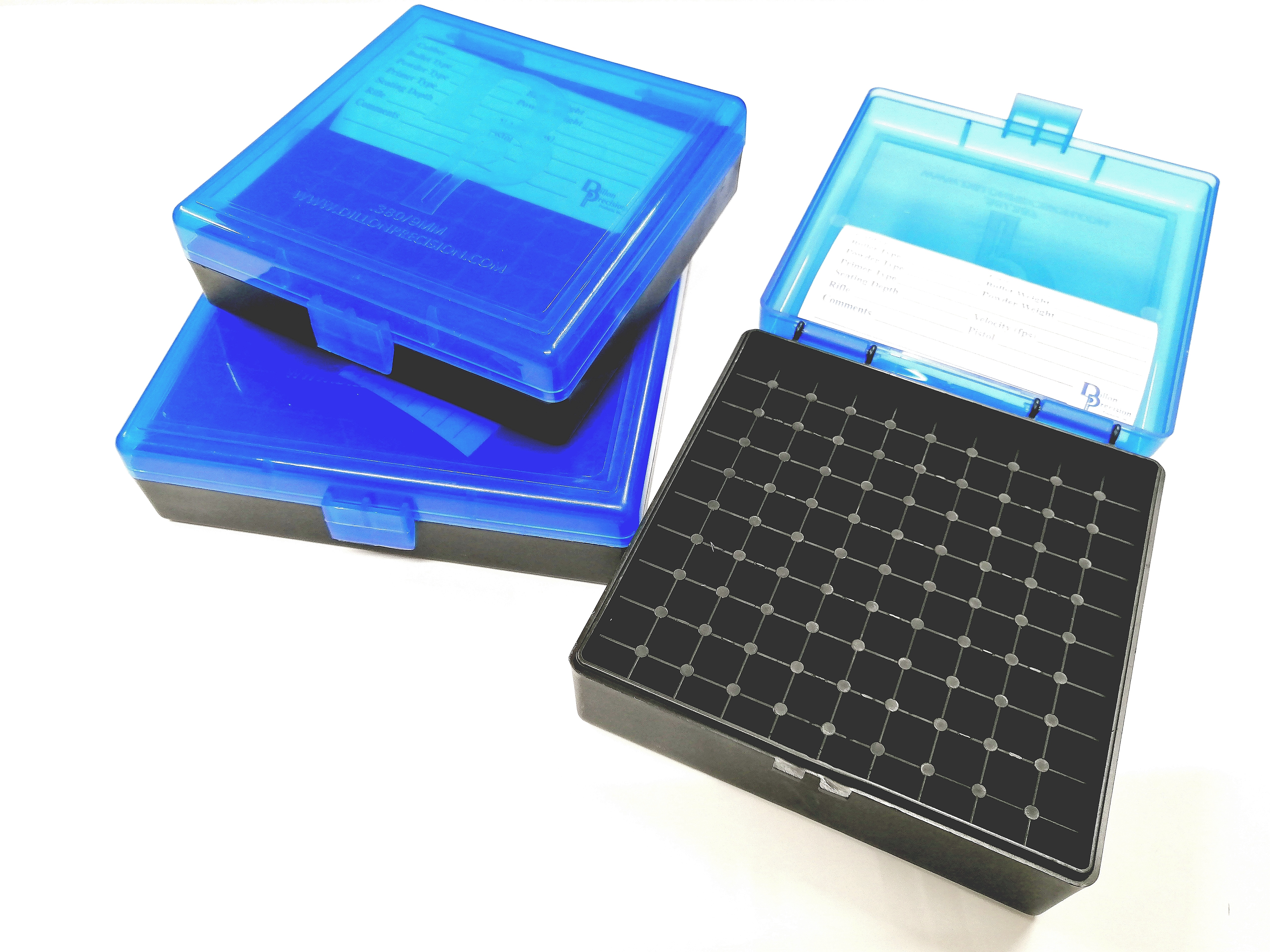 Dillon plastová krabička na 100 ks nábojů Krabička je vyrobena z odolného plastu. Namodralé průhledné víčko krabičky nově s pantem. Krabička má kvalitní uzávěr a pojme 100 nábojů. Ve stejných rážích lze na sebe krabičky stohovat   celý popis