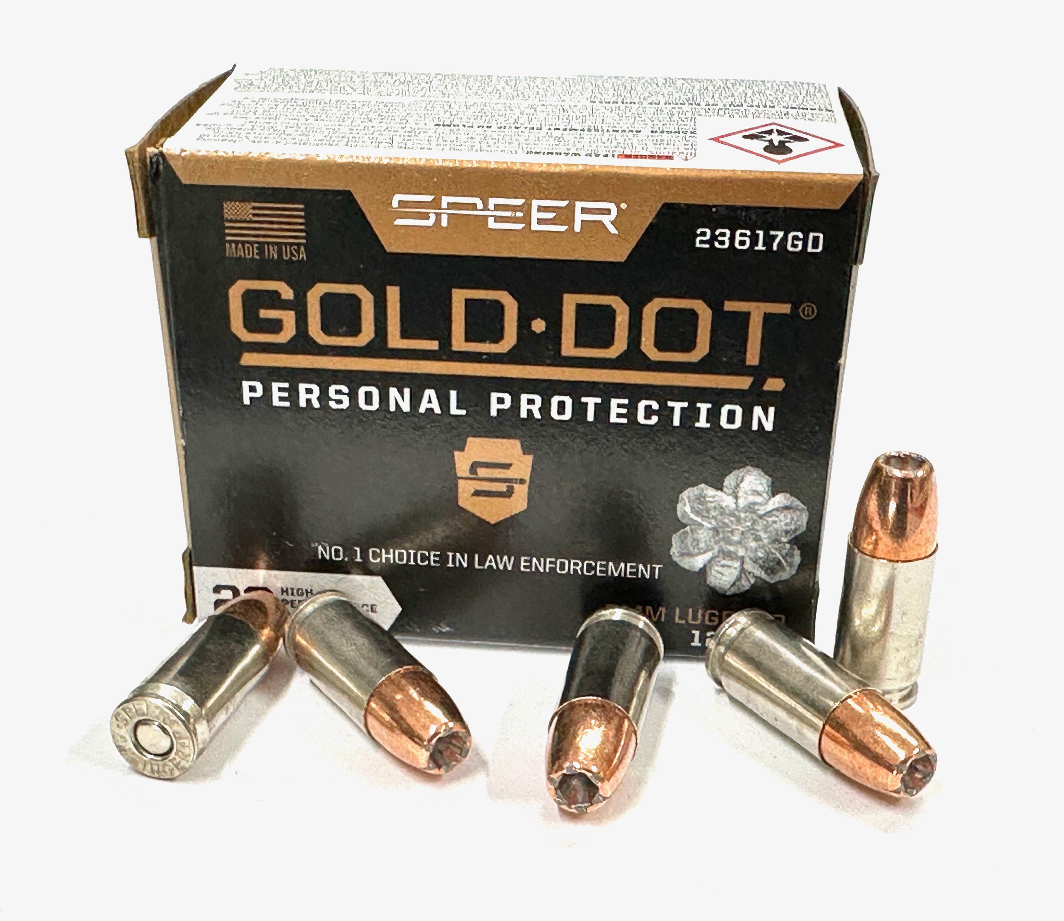 Náboj 9mm Luger+P 124gr JHP GoldDot Speer