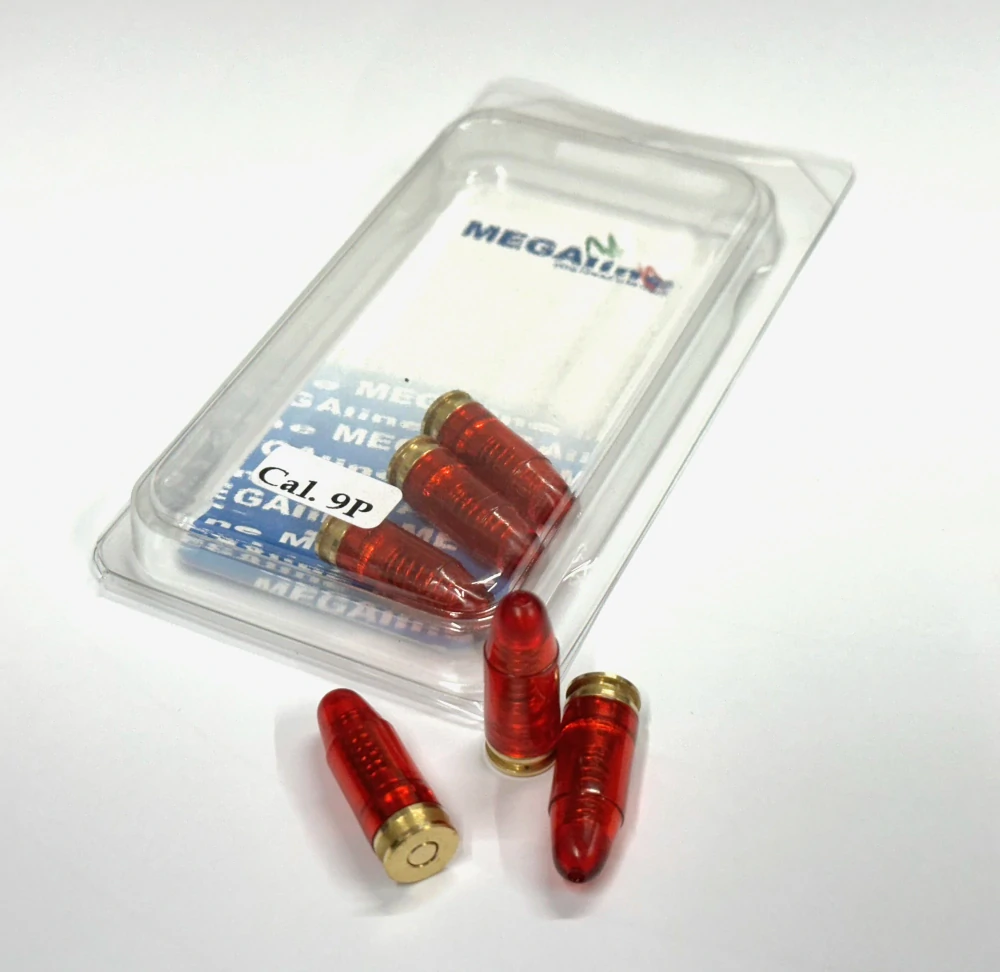 Cvičná plastová munice Megaline pro pistole ráže 9mm Luger je vhodná k suchému nácviku se zbraní bez poškození úderníku.
