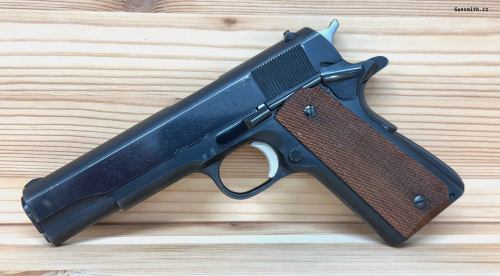 Originální pistole Colt 1911 A1 Series 70 (bez blokace úderníku) v ráži .45ACP, v černěném provedení, vyrobená v roce 1975.