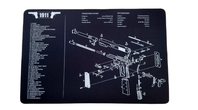 Gumová podložka na čištění a údržbu zbraní s rozkresem těchto pistolí: Berreta 92 Glock Sig P226 Springfield XD Springfield XD(m) SKLADEM: 1911, Glock,Berreta 92, Sig P226 a 220, Springield XD a Springfield XD(m)   Text rozkresu v anglickém jazyce. Materiál: guma/textil - povrch podobný jako u pod... celý popis