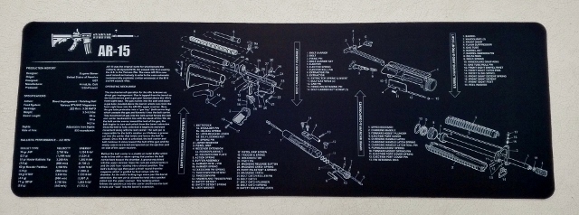 Gumová podložka na čištění a údržbu zbraní s rozkresem těchto pušek/brokovnice: AR-15 AK-47 Remington 870 SKLADEM: AR-15, AK-47 a Remington 870. Text rozkresu v anglickém jazyce. Materiál: guma/textil - povrch podobný jako u podložek pod PC myš Rozměry: 30,5 x 91 cm celý popis
