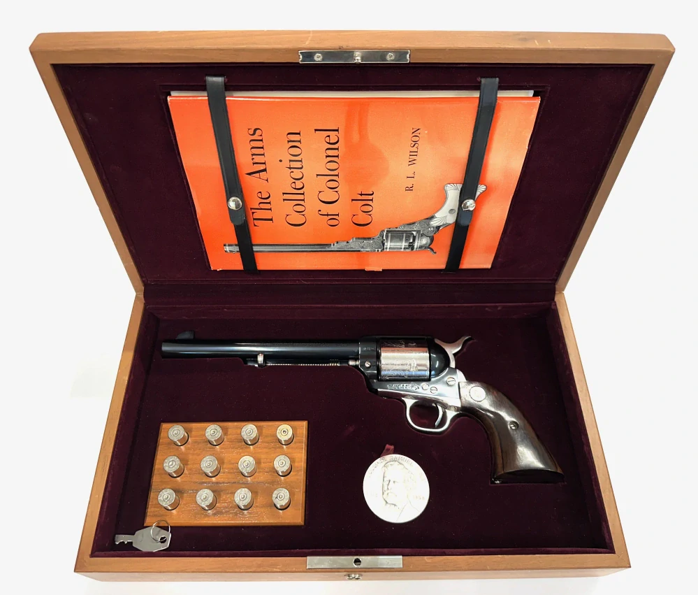 Revolver je uložen v dřevěné krabici, spolu s 12 ks dekoračních nábojů v niklovaném provedení, pamětní medailí a ve víku dřevěné krabice je umístěna kniha The Arms Collection of Colonel Colt od R. L. Wilsona.