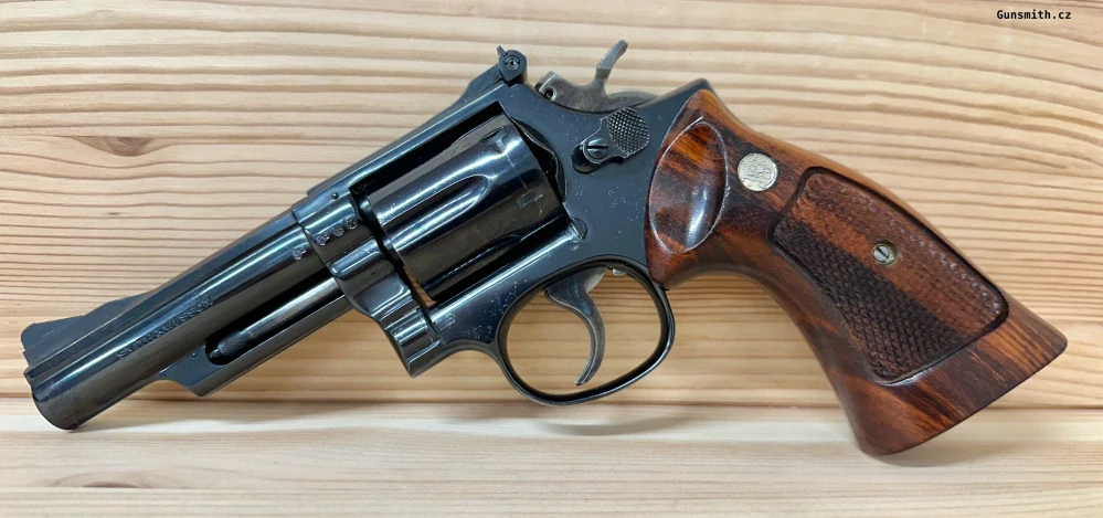 použitý americký revolver v černě leském provedení s 4" hlavní ráže .357 Magnum. Jedná se o původní konstrukci s čepovanou hlavní, rok výroby 1977.