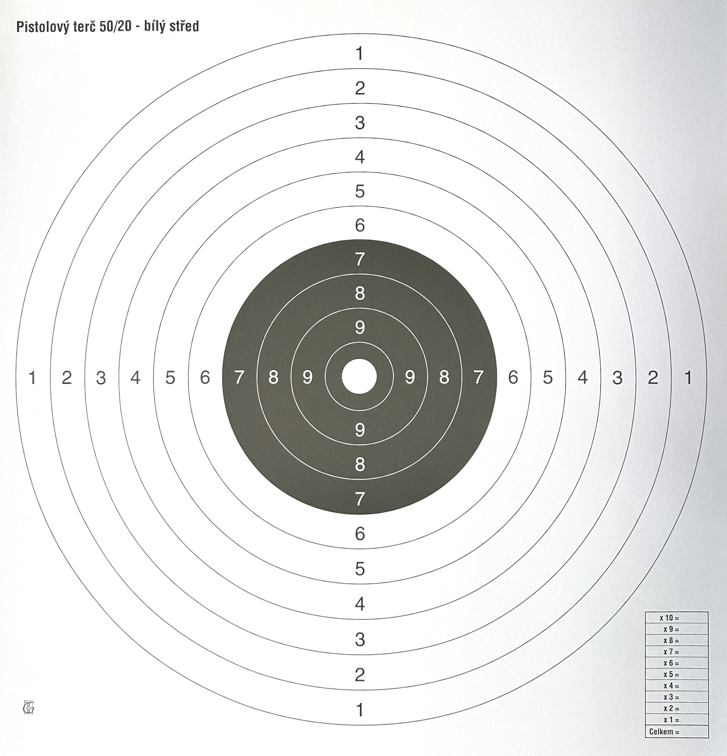 Terč 50/20 mezinárodní pistolový + bílý střed 53x65cmSkladem8,00 Kč/ ks6,61 Kč bez DPH